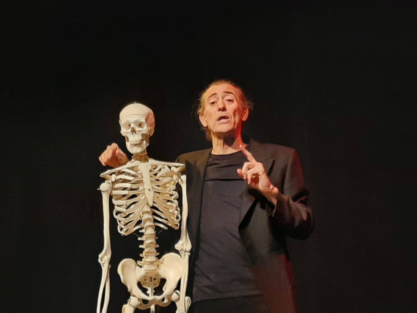 El actor Jesús Peñas a carcajadas, con la muerte a cuestas, en la Sala Guirigai