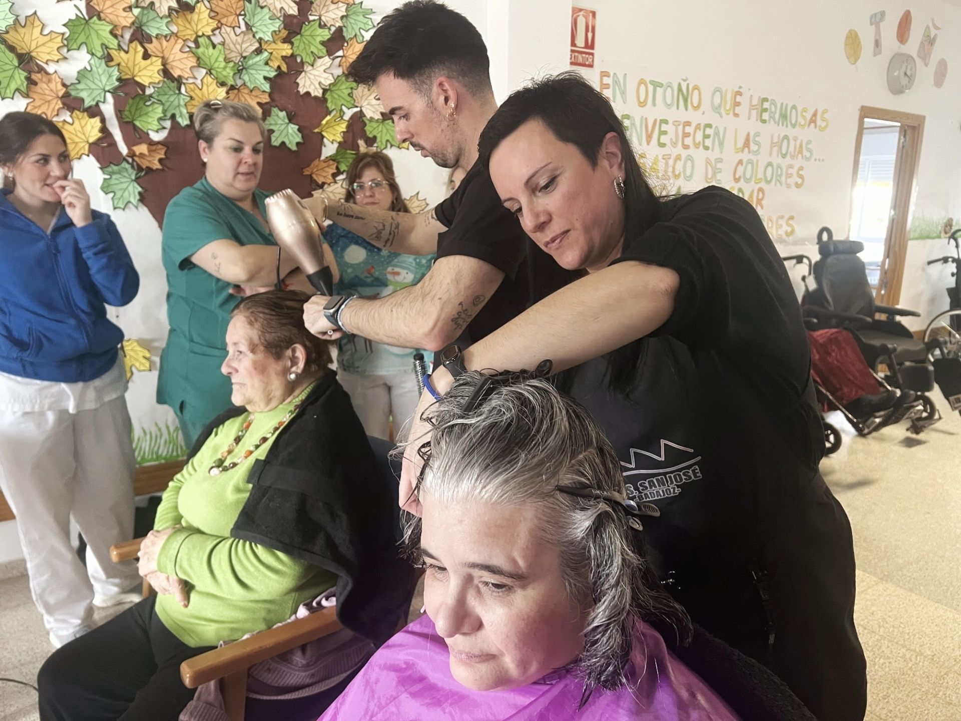 A los ancianos de la residencia Antonio Zapata de Los Santos de Maimona que quisieron también les arreglaron sus cabellos dentro de una jornada muy especial para todos ellos.