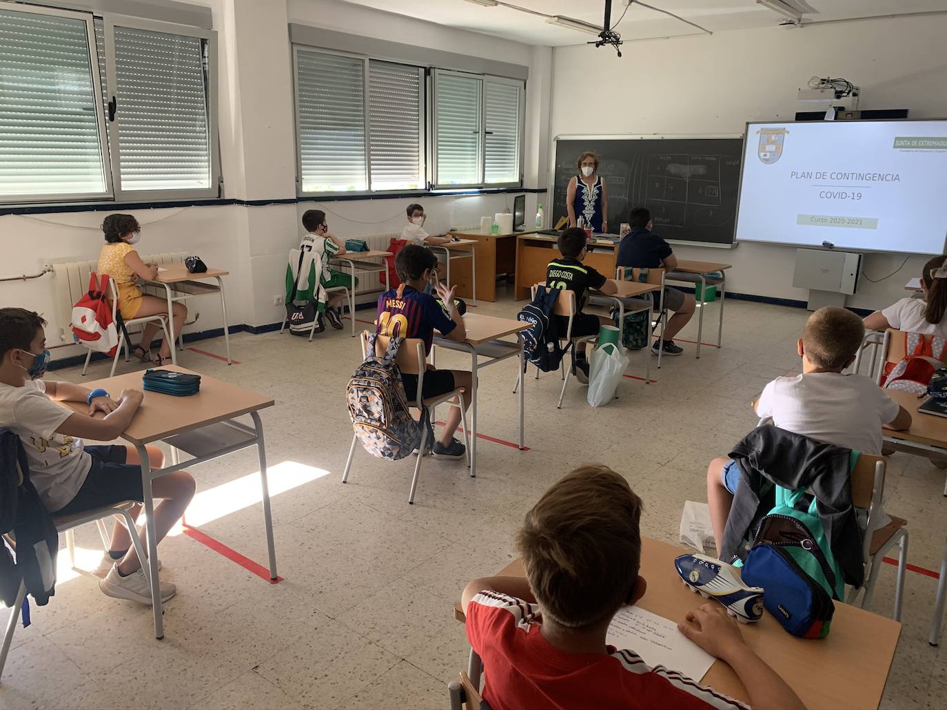 Las aulas cumplen con la normativa de separación de pupitres individuales y ventilación exigidas. También se han fragmentado las zonas de recreo, de tal forma que cada clase tendrá su propia zona y no se mezclarán.