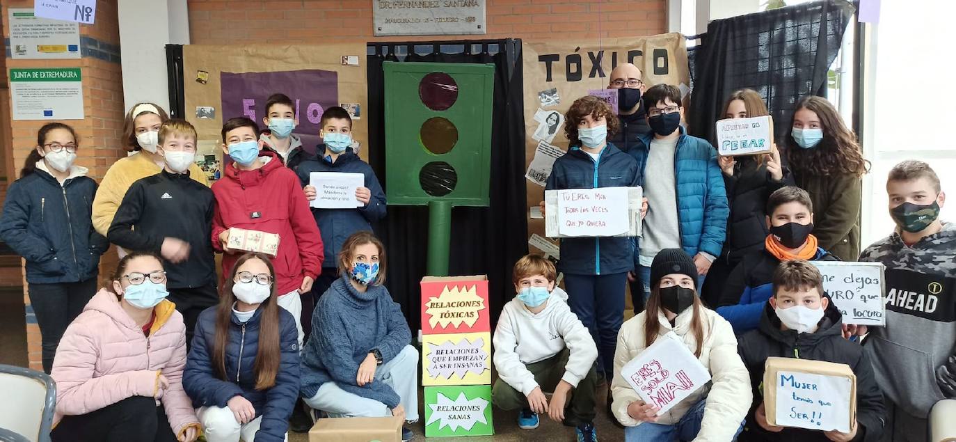 Desde el lunes pasado, el Centro Educativo ha estado decorado con frases de parejas sanas, relaciones que empiezan a resultar insanas y relaciones toxicas. Además de un semáforo de cartón elaborado por alumnos de valores y usado en el debate.El IES Dr. Fernández Santana de Los Santos ha trabajado desde las tutorías, actividades sobre roles y estereotipos de genero para los cursos de la ESO y para cursos superiores- bachillerato y módulos de Formación Profesional- sobre actividades de Violencia de Género en la RED.