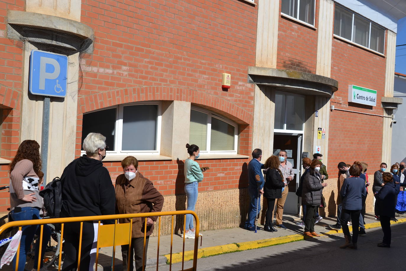La puerta del Centro de Salud es un hervidero: ahí confluyen los grandes dependientes y mayores de noventa años- que se ponen la segunda dosis- y los mayores de ochenta que también han sido citado. Voluntarios de Cruz acaban de llegar con una mujer.