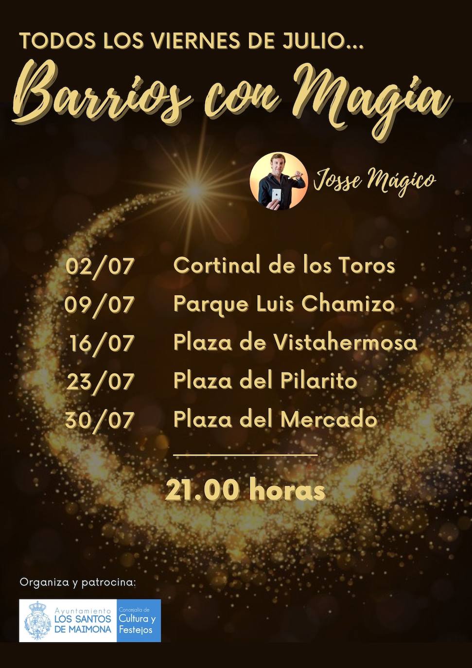 Vuelve 'Barrios con Magia', los viernes del mes de julio. El mago local Josse Mágico será el encargado de llevar la magia a distintos puntos de la localidad: el 2 de julio en Cortinal de los Toros, el 9 de julio al parque Luis Chamizo, el día 16 será en Vistahermosa, el 23 en la plaza del Pilarito y el 30 en la del Mercado de Abastos.