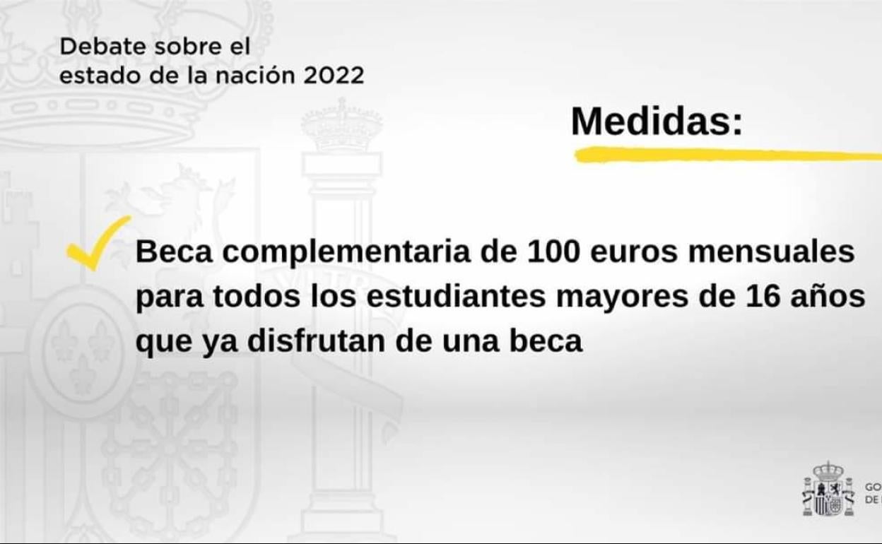 «Todas las Becas que se solicitaron desde la Casa del Pueblo y hayan sido aceptadas, recibirán esta nueva Beca complementaria. En total, se aprobará por cada expediente de beca un total de 400€ correspondientes a los meses de septiembre, octubre, noviembre y diciembre». Señala la notaSegún la información que el PSOE local hace llegar a este periódico, el gobierno central complementa con más dinero las becas de estudio para FP, ... Bachillerato, Universidad y FP. El periodo de pago ha comenzado en septiembre y finaliza el 31 de diciembre 2022. Se trata de una beca complementaria de 100 euros mensuales.