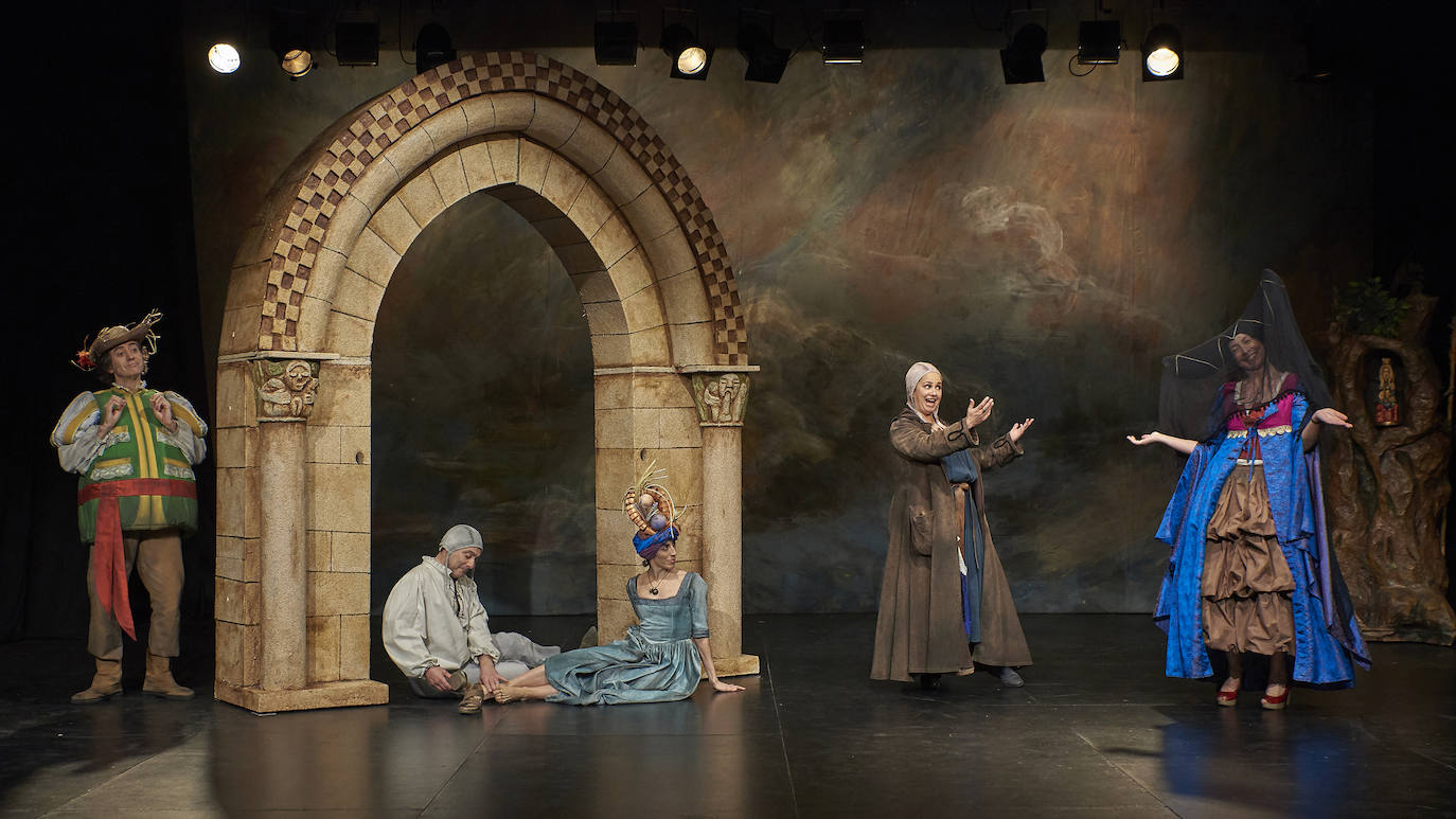 La Comparsa del Arcipreste es protagonista y motor del espectáculo, las juglaresas y juglares que la conforman hacen cómplice al público desde el primer momento del espectáculo. Encabezados por el Arcipreste de Hita, interpretado por Raúl Rodríguez, son amantes de la buena vida, la buena mesa, el buen amor. Recorren los caminos de la península, buscando sus fiestas y romerías, desplegando su oficio de juglares, para integrarse en ellas. Interpretan las andanzas juveniles del Arcipreste; las fantasías vitales de don Carnal y doña Cuaresma o los amoríos secretos del convento. Tienen repertorio y oficio, mucho oficio. Son vividores y libres. Cinco personajes unidos por la necesidad y el deseo de compartir arte, juergas y sabiduría. Magda Gª-Arenal, Jesús Peñas, Mercedes Lur y Asunción Sanz son parte de un elenco que ha recibido numerosos aplausos y excelentes críticas.