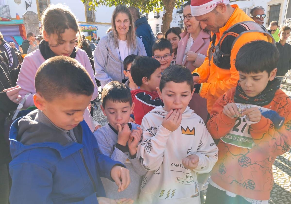 Y sonaron pero cinco minutos antes porque el reloj de la torre de la Iglesia no está bien puesto en hora. Y ocurrió que a todos les cogió desprevenidos cuando las campanadas del reloj de la torre sonaban veloces. Algunos ni siquiera hicieron amago de comer las golosinas repartidas al efecto e hicieron bien, porque minutos después y desde el balcón de la Casa de la Cultura sonaron enlatados los cuartos y las campanadas electrónicas bien acompasadas. Ya hay tema para los próximos carnavales. En lugar de Doce campanadas a medio día sonaron veinticuatro. Las que sí se repartieron a su hora fueron las exquisitas migas con chocolate tanto a quienes esperaban despedir el año con las 'campanadas a medio día' como los participantes en la carrera San Silvestre Santeña San Sisan que terminaban en el paseo de las barandas su recorrido