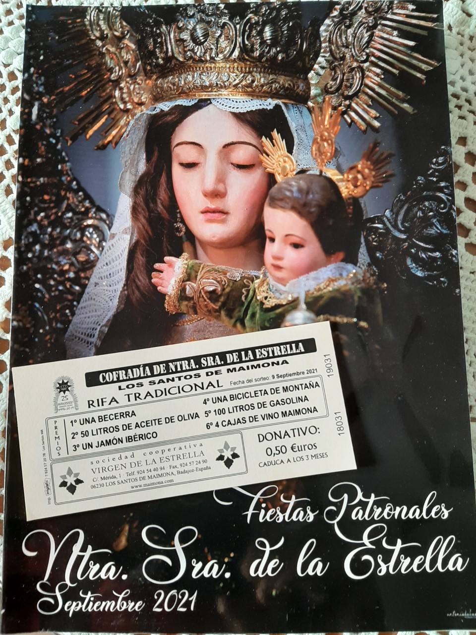 El sorteo de la 'becerra y otros artículos como aceite o gasolina' se celebrará en el Patio de la Virgen de la Estrella el día 9 de septiembre. Con este acto se darán por concluidas unas fiestas que, de nuevo, brillarán pero solo con los actos religiosos.Este pasado viernes, 20 de agosto, la Cofradía de Ntra. Sra. de la Estrella ha comenzado la venta de las papeletas de la Rifa de la Becerra. Dicha venta se realiza estos primeros días, casa por casa, siguiendo la tradición del llamado 'Petitorio' y luego se pueden encontrar a la venta en el santuario o solicitándolas a cualquiera de las personas que conforman la Junta de Gobierno de la hermandad. El sorteo de la 'becerra y otros artículos como aceite o gasolina' se celebrará en el Patio de la Virgen de la Estrella el día 9 de septiembre. Con este acto se darán por concluidas unas fiestas que, de nuevo, brillarán pero solo con los actos religiosos ya que por la pandemia, y de manera responsable, la Junta de Gobierno no ha organizado ningún otro ya sea cultural, de ocio o deportivo.
