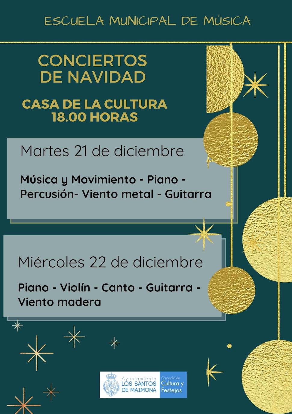 El tradicional concierto de Navidad de la Escuela Municipal de Música, en el que actuarán las diferentes aulas, se celebrará de forma presencial en el salón de actos la Casa de la Cultura repartido en dos días: este martes 21 de diciembre, y el miércoles día 22. Ambos darán comienzo a las 18.00 horas.
