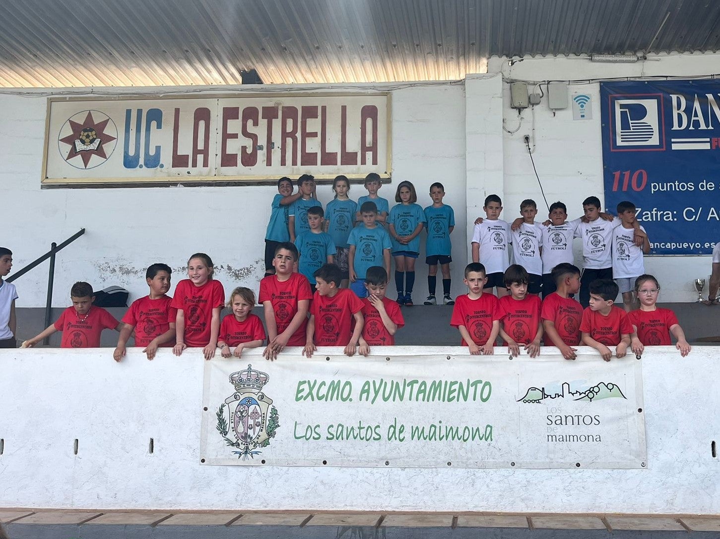 El sábado 30 de abril se recordará en Los Santos de Maimona como un pasito más para volver a disfrutar de esta nueva normalidad, ya que casi 300 chicos y chicas de los tres colegios de primaria, Romero Muñoz, Mauricio Tinoco y Juan Blanco se volvieron a dar cita en el Cipriano Tinoco para disfrutar sin restricciones de una jornada de «fútbol» entre compañeros de clase, tras dos años en lo que este evento no pudo ser realizado.