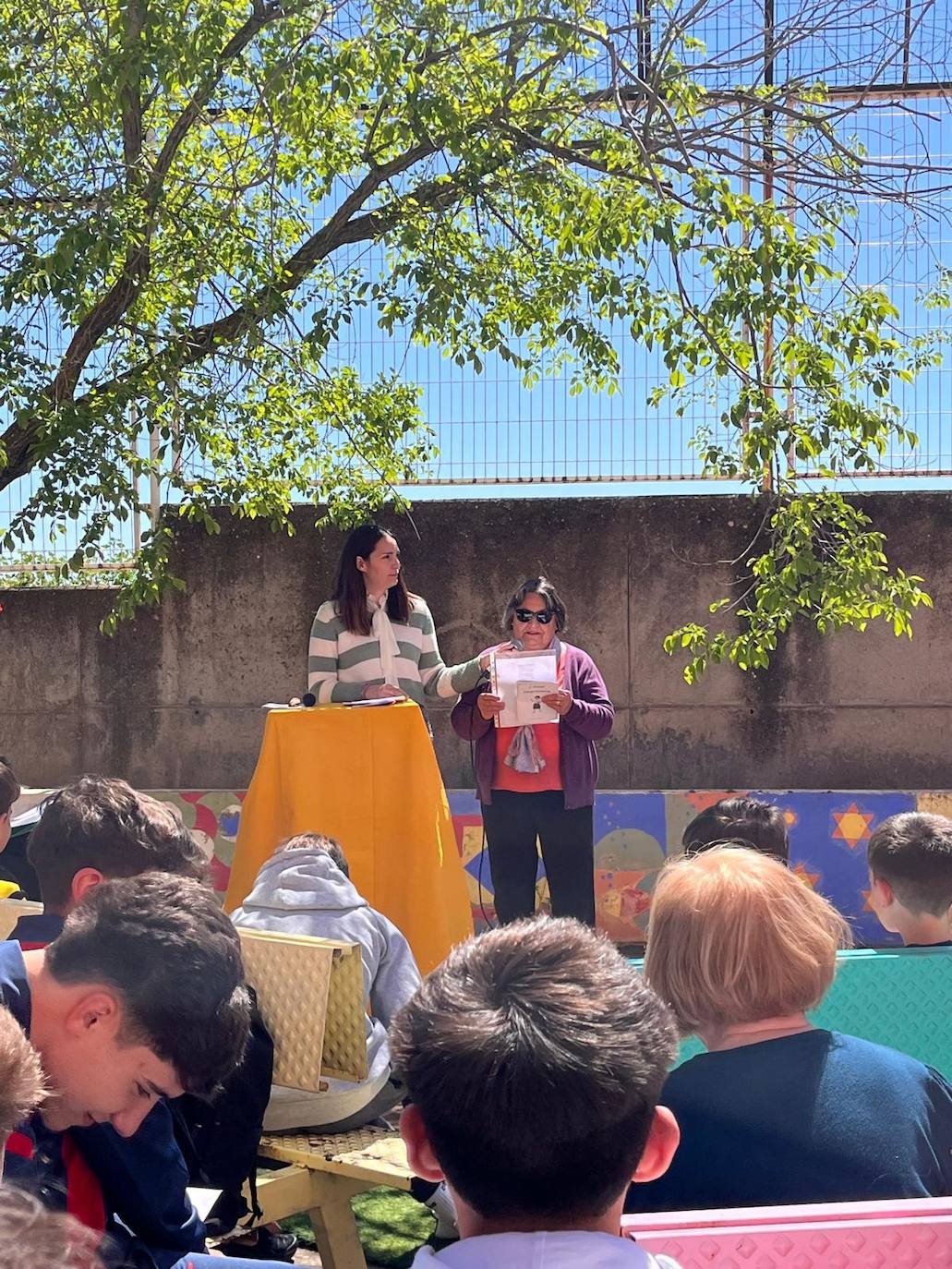Para esta actividad «vinieron 10 mayores del Hogar de Mayores a leer poemas con nuestros alumnos», explica una de las profesoras del centro. Además, el profesor de música cantó con el coro del instituto.