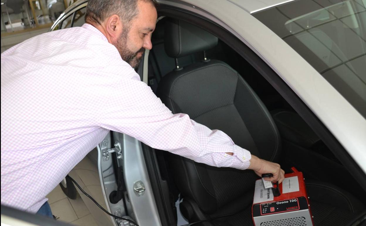 Para ello adquirió una máquina específica de limpieza con ozono, un gas que llega a los lugares más recónditos del vehículo. La máquina, que funciona con electricidad, se deposita dentro del coche y transforma el aire en ozono. De esta manera está limpiando durante una media hora, después hay que dejar las puertas abiertas durante unos 10-15 minutos, quedando todo perfectamente desinfectado y sin riesgo de contagio.