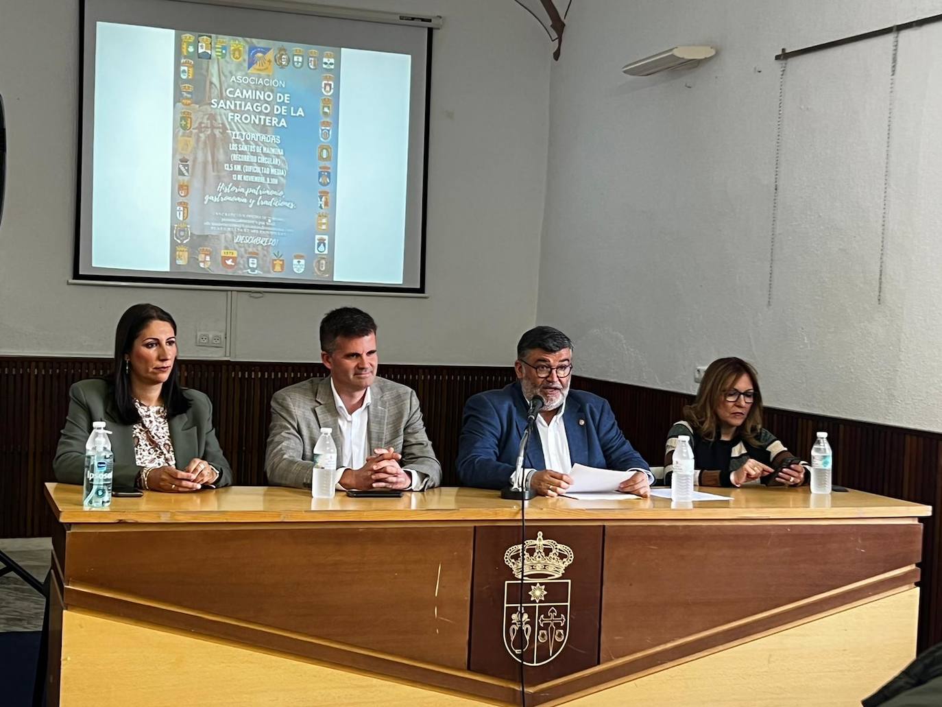 El acto central e institucional de estas jornadas tuvo lugar el sábado 12 de noviembre con la recepción de autoridades en la Casa de la Cultura. Además del alcalde de Los Santos de Maimona, Manuel Lavado Barroso y los concejales santeños, estuvieron presentes alcaldes y concejales de diferentes localidades que forman parte del Camino en la Frontera: el presidente de la Asociación de Amigos del Camino de Santiago en la Frontera y alcalde de Estepa, Jesús Muñoz, y la concejala de Turismo de esa localidad; el alcalde de El Rubio, la alcaldesa de Llerena, el alcalde de Villagarcía de la Torre, el de Pruna, y alcalde y concejales de Olvera. También estuvieron presentes representantes de diferentes asociaciones locales.
