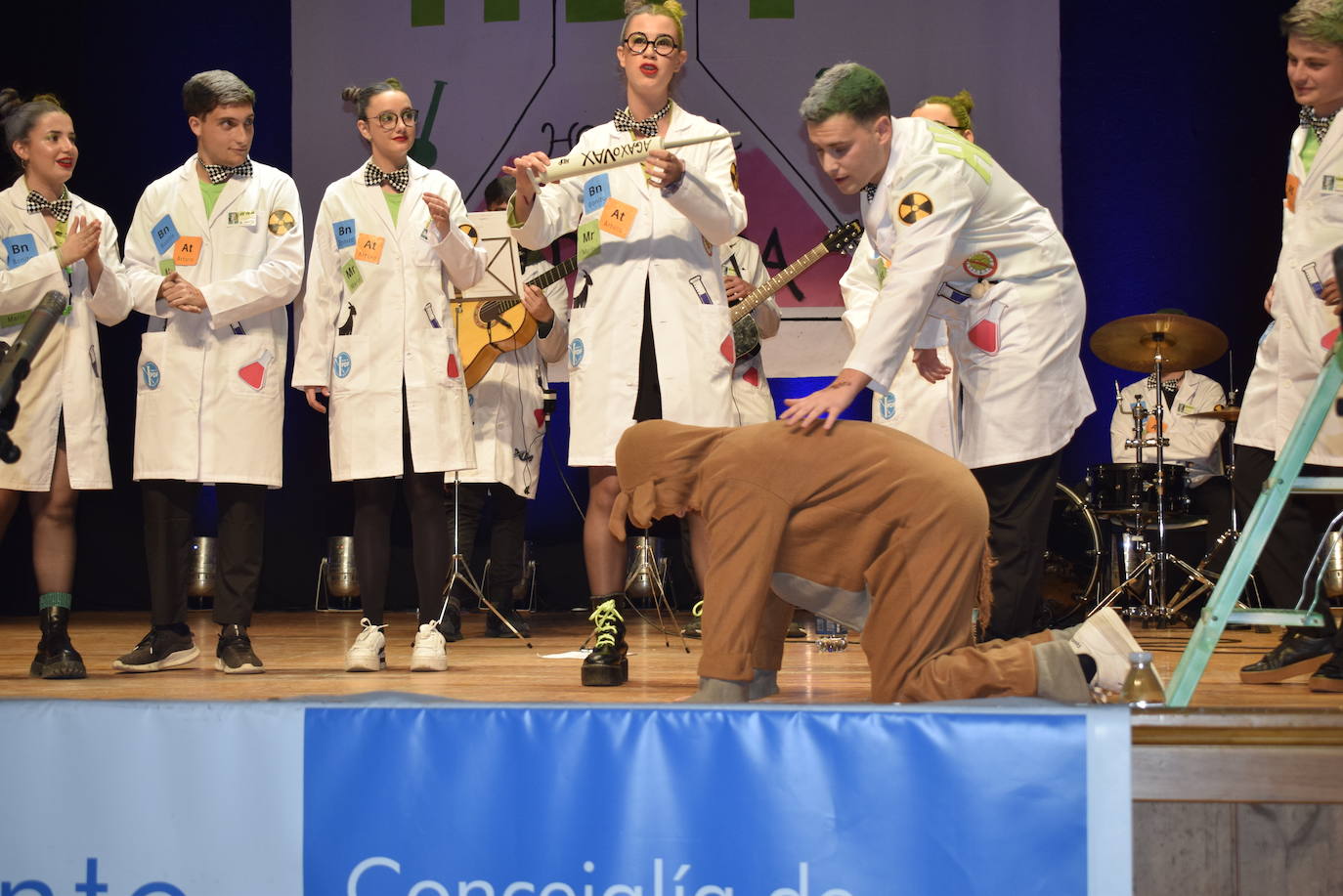 Después del sevillano cómico subía al escenario 'Pa 4 Días en su Línea', una de las agrupaciones veteranas en el Concurso de Murgas de Badajoz. Caracterizados como telefonistas y centralitas, inspirados en la serie 'Las Chicas del cable', compartieron con los presentes su repertorio musical y su crítica desenfadada consiguiendo los aplausos de su público.