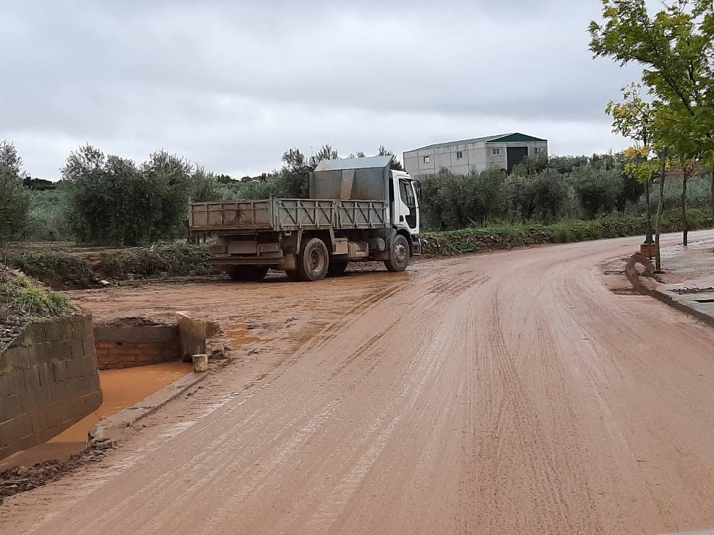 Los arroyos transcurren llenos pero sin grandes desbordamientos, Nada que ver con la anterior aguada. En el camino del cementerio, de nuevo en la curva, ha rebosado y arrastrado barro por lo que se ha colocado una señalización de peligro. Es precisamente ahora cuando más tráfico se espera en este camino.