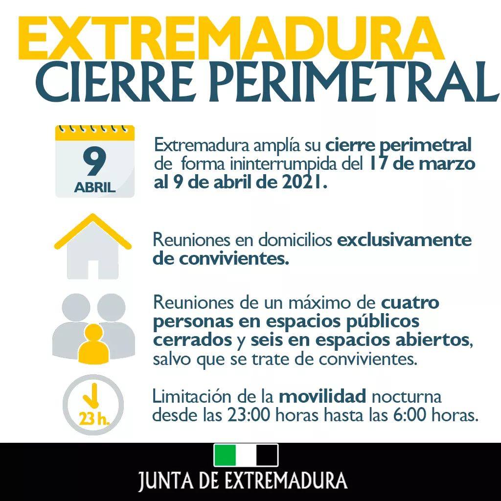 Salvo Baleares y Canarias, todas las comunidades autónomas cierran en el puente de San José, la Semana Santa y la semana intermedia. En Extremadura el día de San José sigue siendo festivo.Desde este miércoles 17 de marzo hasta el nueve de abril, Extremadura estará perimetralmente cerrada como el resto de las comunidades autónomas con excepción de las Islas Baleares y Canarias.