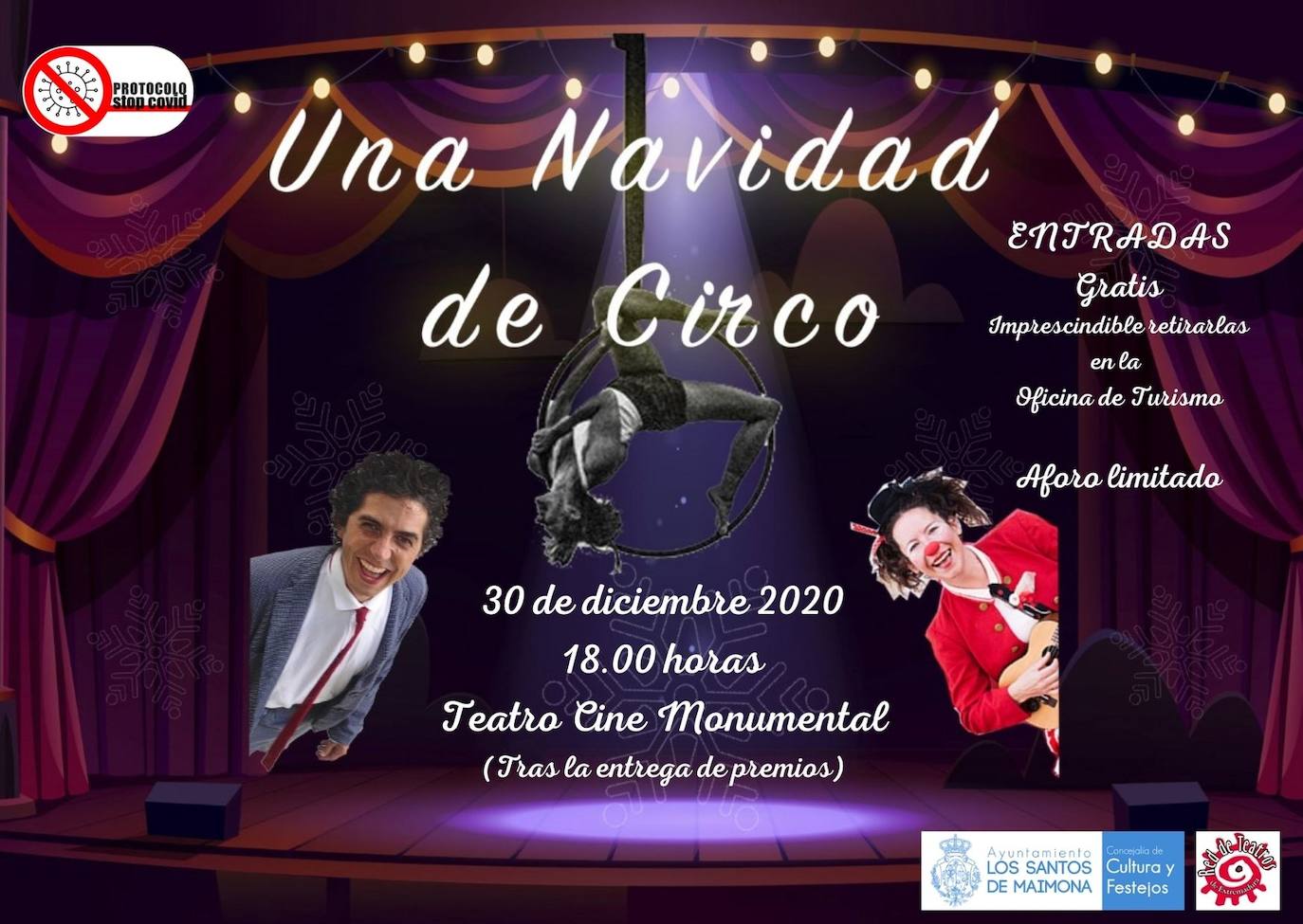 'Una Navidad de Circo' llega a Los Santos de Maimona a través de la Concejalía de Cultura del Ayuntamiento y la Red de Teatro de Extremadura.