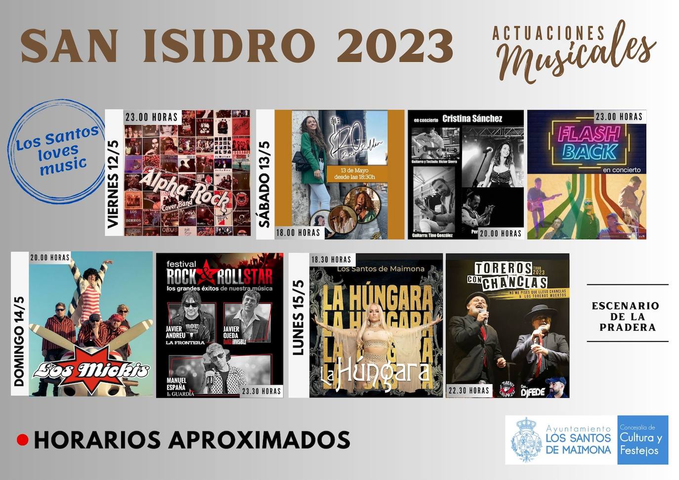 Todos los horarios de las actuaciones son aproximados.