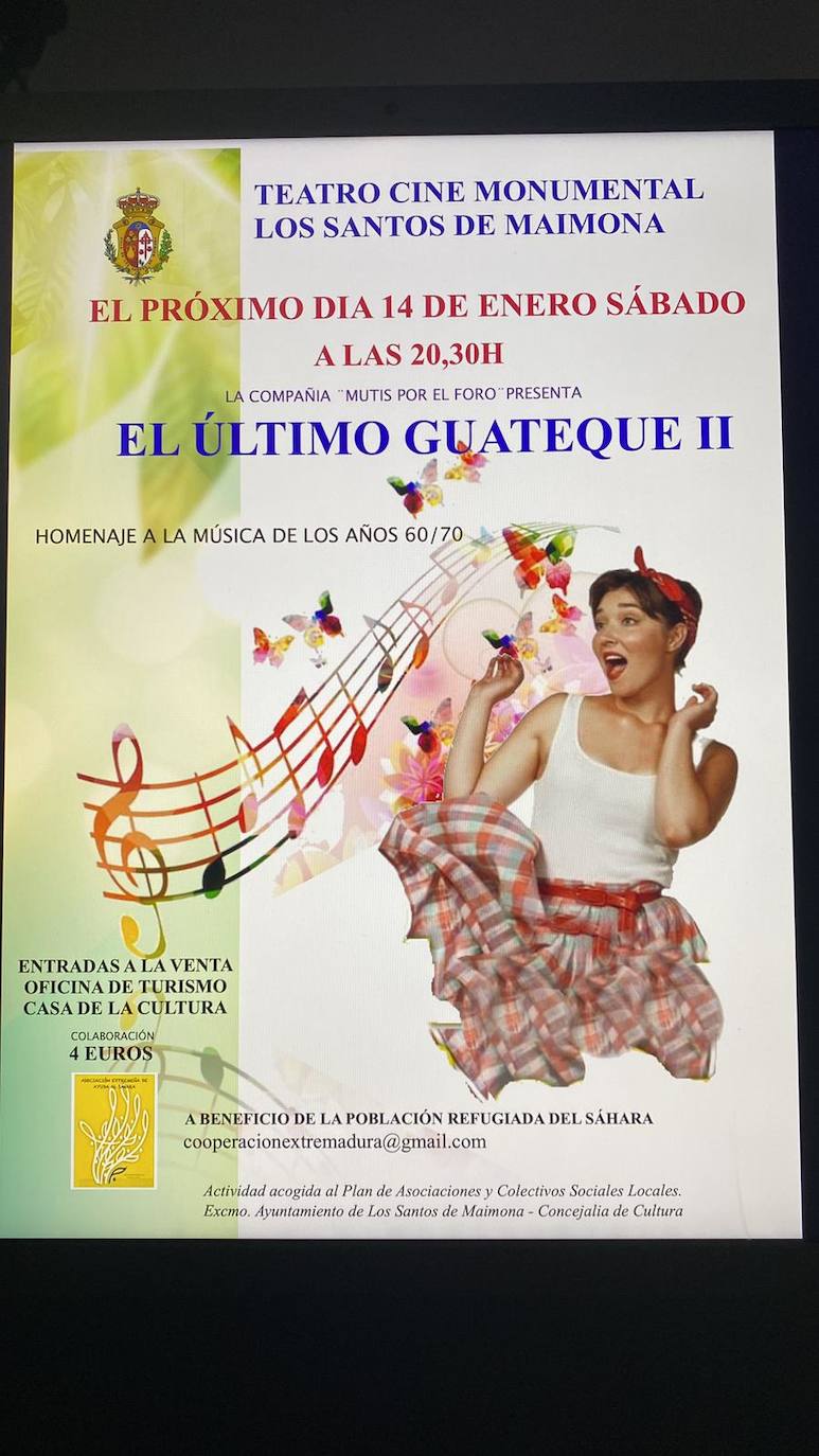La compañía teatral 'Mutis por el Foro' representará este sábado 14 de enero en el Teatro Cine Monumental su obra 'El Último Guateque II'. Lo hace en beneficio de la población refugiada del Sáhara.