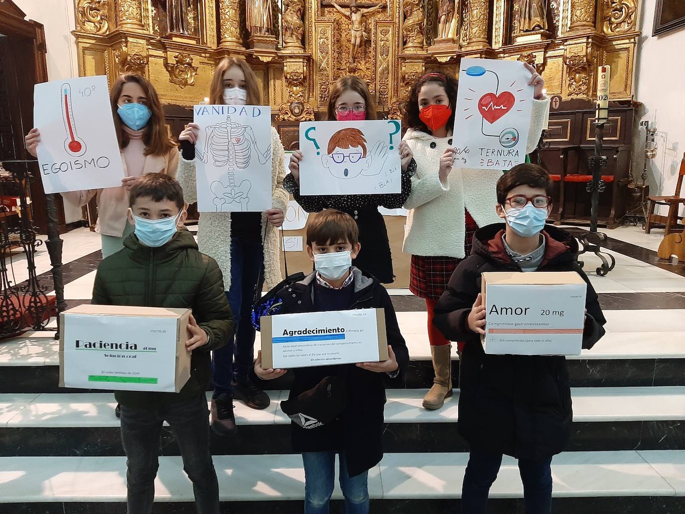 Este domingo, por ejemplo, ha sido el dedicado a Jesús como sanador, como médico del cuerpo y del alma. Ello ha dado pie a que en los símbolos y en la homilía del párroco Leonardo Terrazas se haya hablado de la pandemia del Coronavirus. En unos carteles se aludía a las medicinas como la paciencia, el agradecimiento y el amor para sanar las enfermedadesLos niños y jóvenes de los distintos grupos de catequesis acuden a la celebración de las misas de los domingos y sábados por la tarde con una menor presencia que cuando no estaba entre nosotros la COVID-19.