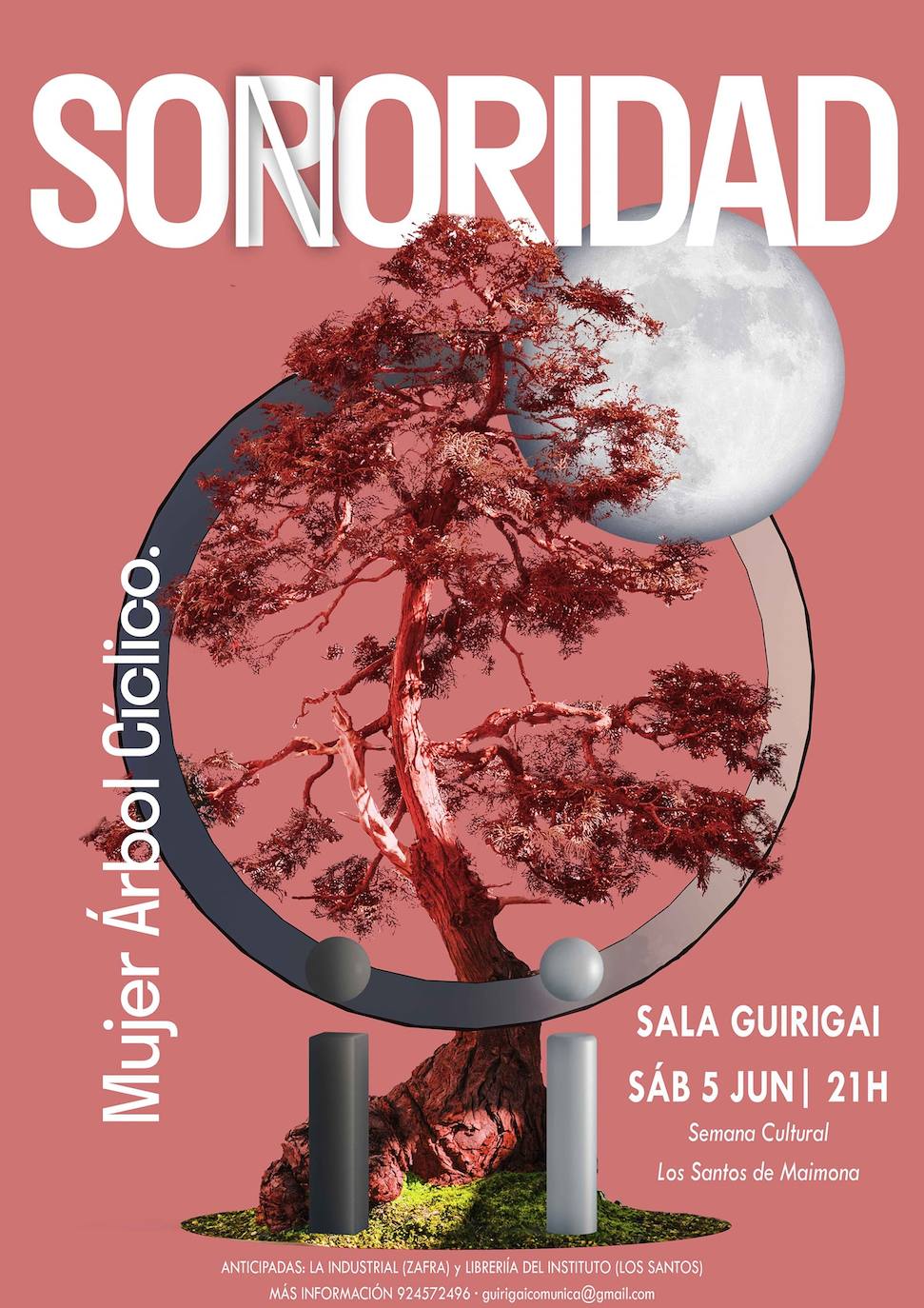 uun amplio repertorio de canciones emblemáticas que relatan vivencias femeninas compuestas por cantautoras hispanoamericanas que han marcado la historia de la música.Tras el cierre perimetral de Los Santos de Maimona, Sala Guirigai reabrirá sus puertas al público si las circunstancias lo permiten hoy sábado 5 a las 21 horas con el concierto de Sonroridad, de Mujer Árbol Cíclico (Badajoz): un amplio repertorio de canciones emblemáticas que relatan vivencias femeninas compuestas por cantautoras hispanoamericanas que han marcado la historia de la música. La actividad está enmarcada en la Semana Cultural del Corpus de Los Santos de Maimona y la entrada tiene un precio único de 8 euros