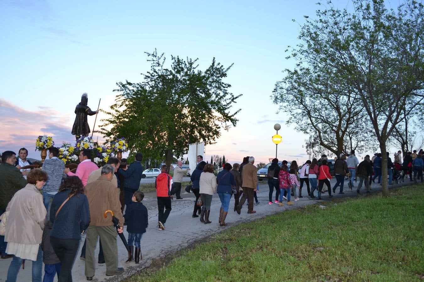 A las ocho y media de la tarde aparecía la imagen de san Isidro Labrador por la Puerta del Perdón del templo Parroquial a quien acompañaban, junto al hermano mayor Antonio Muñoz, las autoridades locales y muchos hermanos de la cofradía. También el grupo de baile de la Asociación de Mujeres y el de la Asociación de bailes regionales infantiles de Los Santos recién creado.