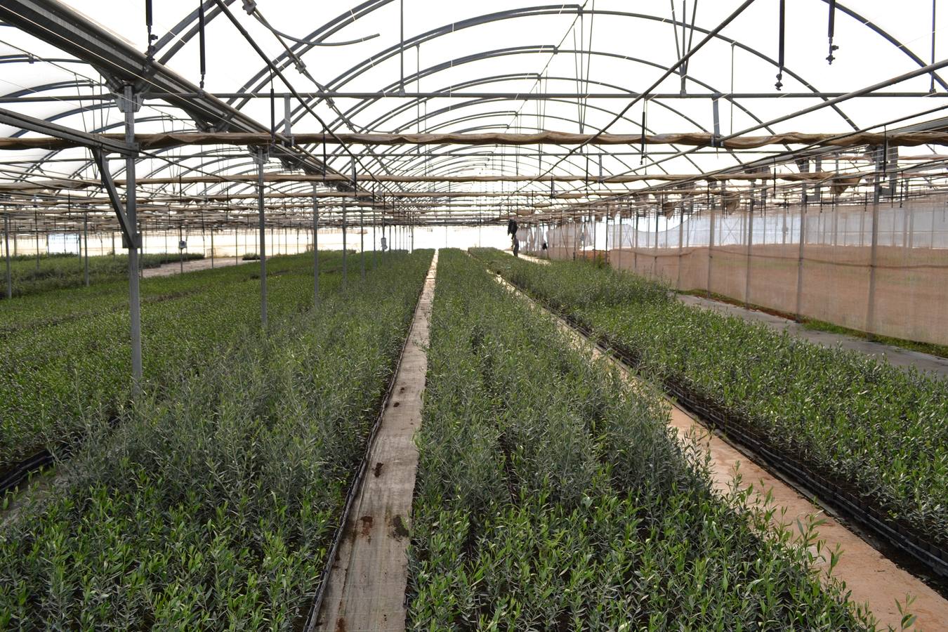 La forma de plantar olivos ha cambiado de manera radical- señala Miguel Ángel Llerena- . Antiguamente los agricultores cortaban una rama leñosa de un olivo y los colocaban en el sitio elegido esperando a que se enraizase y creciese, cosa que llevaba mucho tiempo; nosotros partimos de esquejes del tamaño de un palillo que conseguimos de nuestras plantas o pies madres, los enraizamos en macetas de papel que están sustituyendo a las de plástico para contaminar menos- y al agricultor se los entregamos listos para plantarlos. Disponemos incluso de máquinas plantadoras guiadas por GPS para colocar cada olivo en su sitio. Las variedades de que disponemos se pueden utilizar para plantaciones tradicionales- 100 plantas por Hectárea-; intensivos entre 200 y 300 por hectáreas -; o súper intensivos o en seto- 1.500 a 2.000 plantas por hectárea-