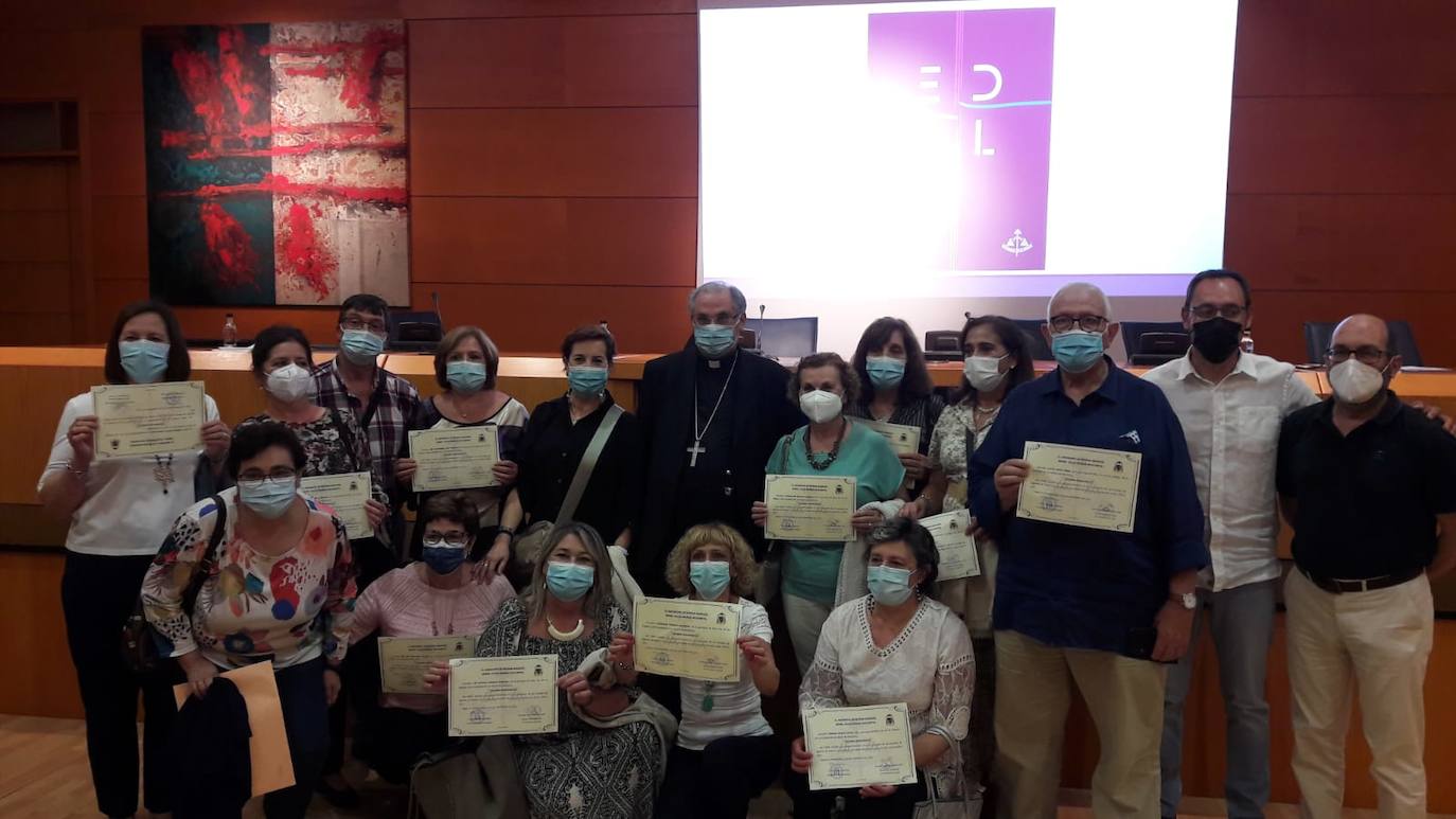 Al acto de entrega de estos diplomas, tanto del grupo de los Santos como del resto de la Archidiócesis asistió el Arzobispo de Mérida Badajoz Monseñor Celso Morga. También se entregaron los de Formación Básicas que son necesarios- dos años de formación- para acceder al de Agente Pastoral.