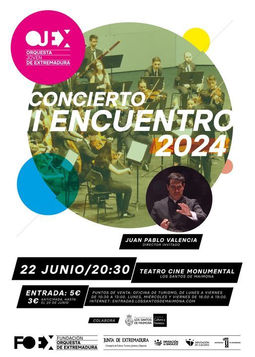 La Orquesta Joven de Extremadura es un proyecto pedagógico puesto en marcha por la Junta de Extremadura a través de la Fundación Orquesta de Extremadura. Fue creada con el propósito de contribuir a la formación de jóvenes músicos en la etapa previa al ejercicio de su profesiónLa Orquesta Joven de Extremadura (OJEX) ha elegido Los Santos de Maimona para celebrar el concierto de su tercer encuentro. Será el próximo sábado 22 ... de junio, a las 20.30 horas en el Teatro Cine Monumental.