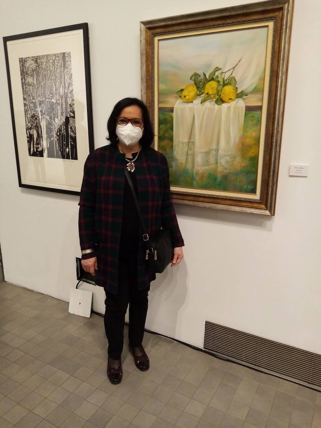 Estrella Apolo, una pintora comprometida con el arte, pero también con las causas nobles, ha donado un importante cuadro -sus adorados membrillos sobre lienzo con puntillas- para esta exposición abierta en el centro Isaac Pablo Serrano de Zaragoza.