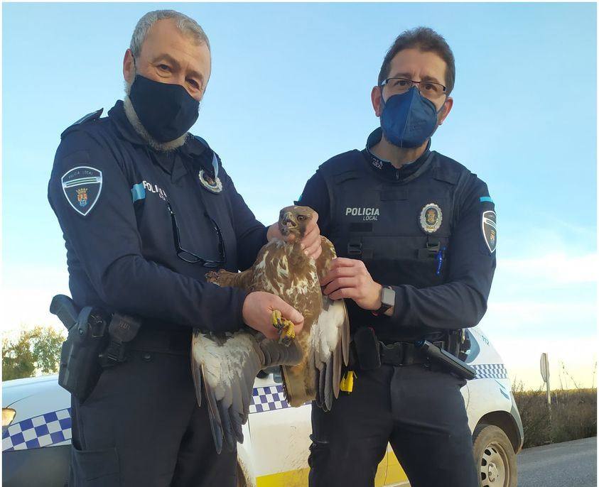 La Policía Local y Amus salvan, de una muerte segura, a un águila herida en la Autovía