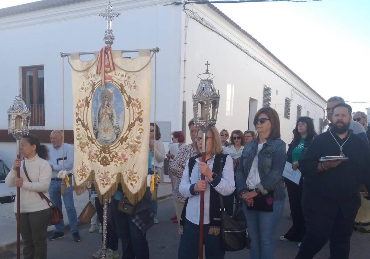 El estandarte de la Cofradía de la Virgen de la Estrella presidió el rosario ·