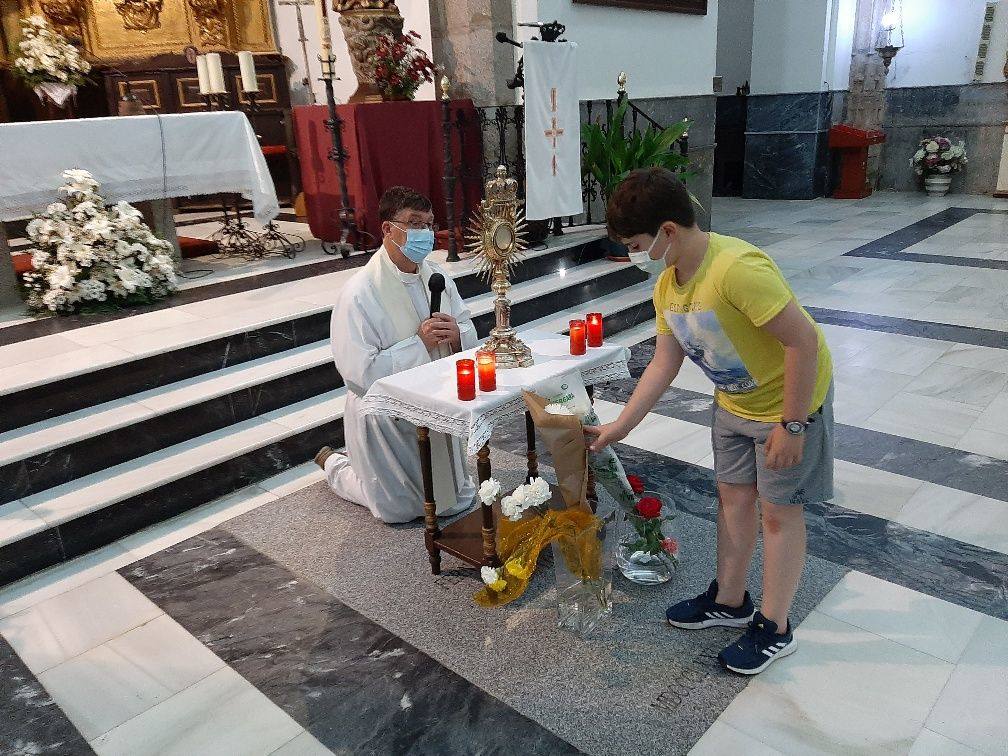 AYER JUEVES LOS NIÑOS DE PRIMERA COMUNIÓN PRIMERO Y LOS ADULTOS DESPUÉS REZARON ANTE EL sANTÍSMO ·