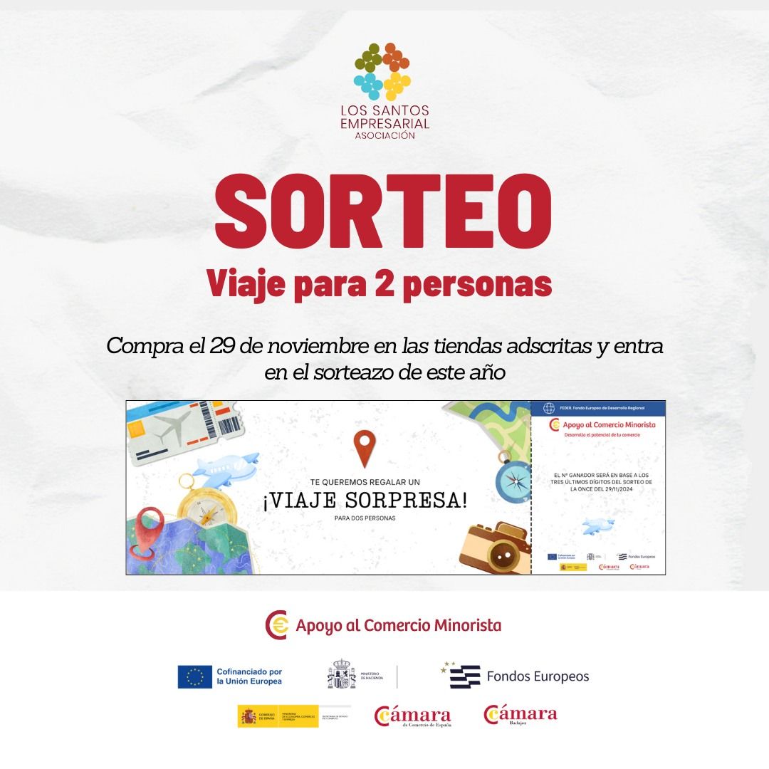 Los Santos Empresarial organizan un sorteo por el Black Friday, este viernes 29 de noviembre. En esta ocasión, sortean un viaje sorpresa para dos personas.