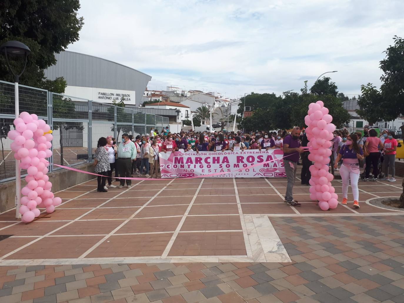 Al finalizar el recorrido, se realizó un sencillo y emotivo acto en el pabellón deportivo en el que se rindió homenaje a todas aquellas mujeres que están luchando contra esta enfermedad, incluso hubo quien contó su experiencia a los presentes, dando ánimo y esperanza a quienes están atravesando por ese procesoUnas 800 personas de todas las edades colaboraron con la Asociación Oncológica Extremeña (AOEX) el pasado sábado 16 de octubre, durante su primera Marcha Rosa Solidaria. Ésta fue la primera actividad que la asociación realizaba en la localidad y con ella conmemoraba el Día Internacional del Cáncer de Mama, que cada año se celebra el 19 de octubre.