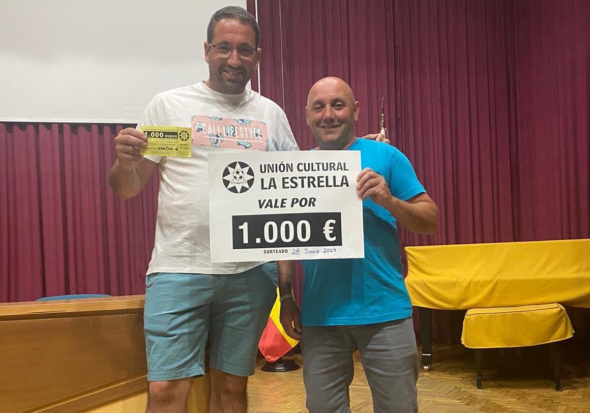 El joven Juanmi se acaba de casar y recibía el premio de manos de un directivo de la Estrella: «Estamos preparando el viaje de novios y este dinerito nos viene genial», ha dicho el agraciadoUn vecino de Los Santos, de Maimona, Juanmi Montaño Canseco, ha sido agraciado con los mil euros del sorteo que la U.C. La Estrella puso en marcha, en combinación con el número agraciado en la once, el pasado mes de mayo. Tras la venta de las papeletas y la celebración del sorteo, este joven santeño que se acaba de casar, recibía el premio de manos de un directivo de la Estrella.