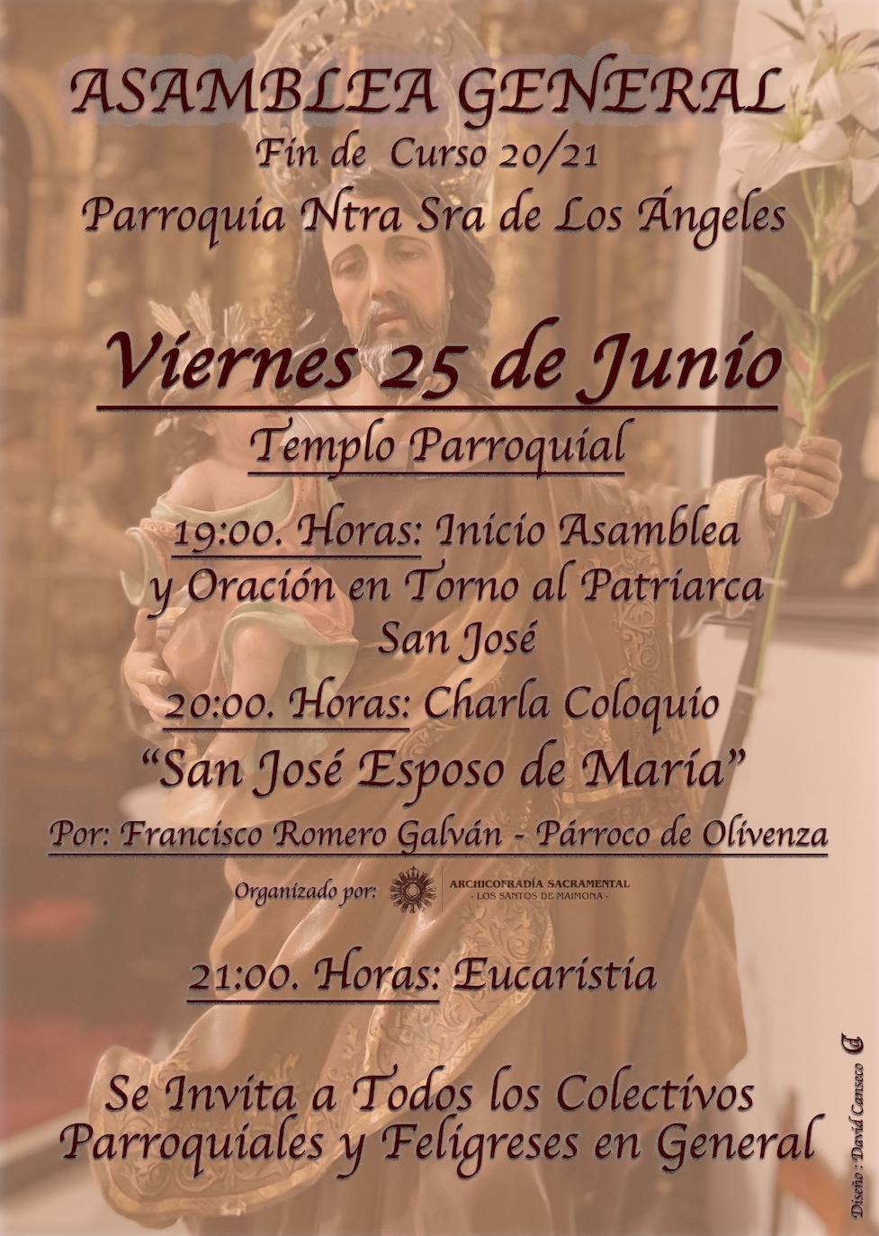 Este viernes 25 de junio, Asamblea Parroquial y charla sobre San José